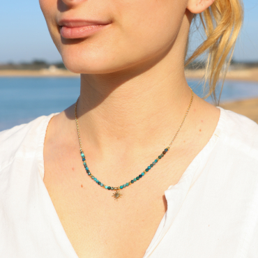 Affirmez votre style, avec le bracelet Isabelle, il mêle subtilement l’intensité des perles d’hématite, la fraîcheur des perles turquoise, et l’éclat chaleureux des perles dorées. Monté sur un câble doré à l'or fin 24 carats, il incarne un équilibre parfait entre authenticité et élégance.