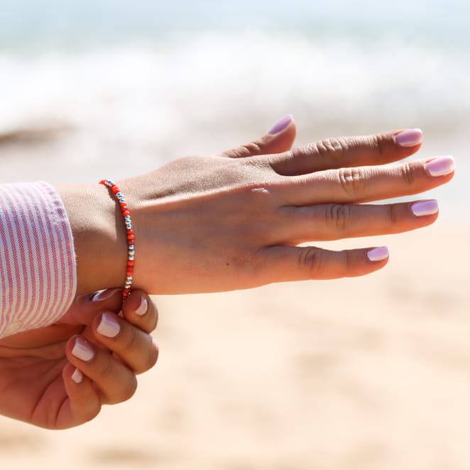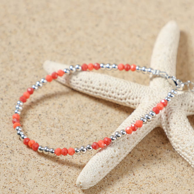 Le bracelet Iseline, aux couleurs vibrantes, qui évoque la chaleur d'un coucher de soleil. L'association du corail et de l’argenté apporte légèreté et éclat à vos tenues, pour un look frais et pétillant. Simple, mais plein de caractère, il est l'accessoire idéal pour ajouter une touche colorée et ensoleillée à votre style. Un petit éclat de soleil à porter au poignet !