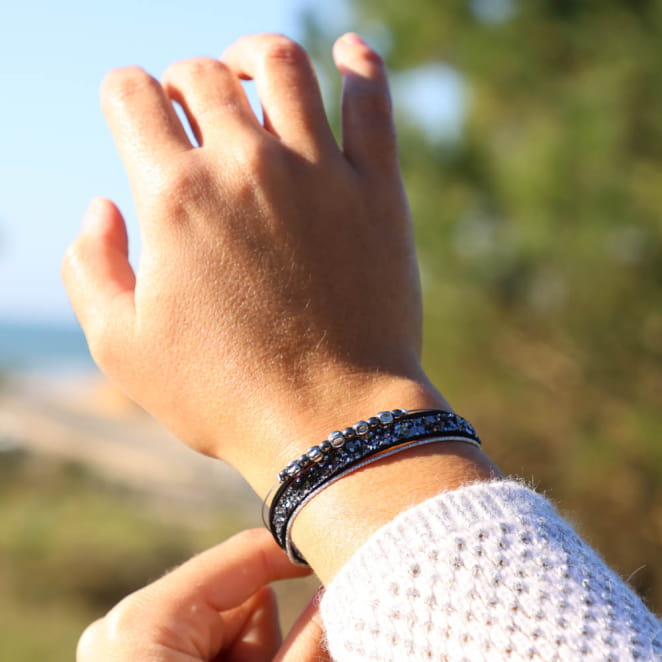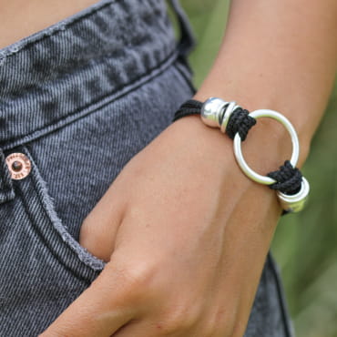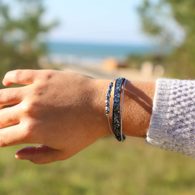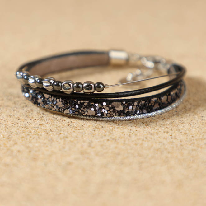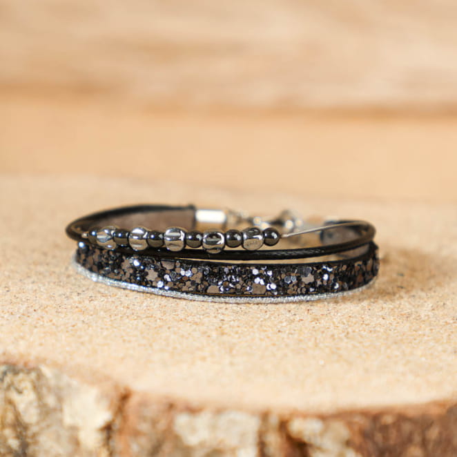 Sublimez vos tenues avec le bracelet argenté et noir Jingle ! voir plus