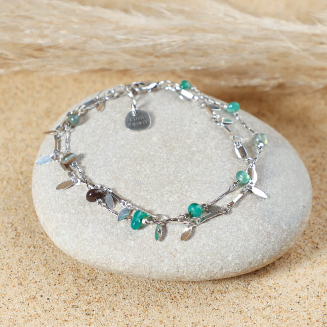 Vous aimez les bijoux originaux et uniques ? Alors le bracelet double chaîne Joana est fait pour vous ! L'ensemble de ses pierres de couleur vert ainsi que la couleur argentée apportent une touche d'élégance à vos looks. Des couleurs raffinées pour accompagner vos tenues au quotidien.