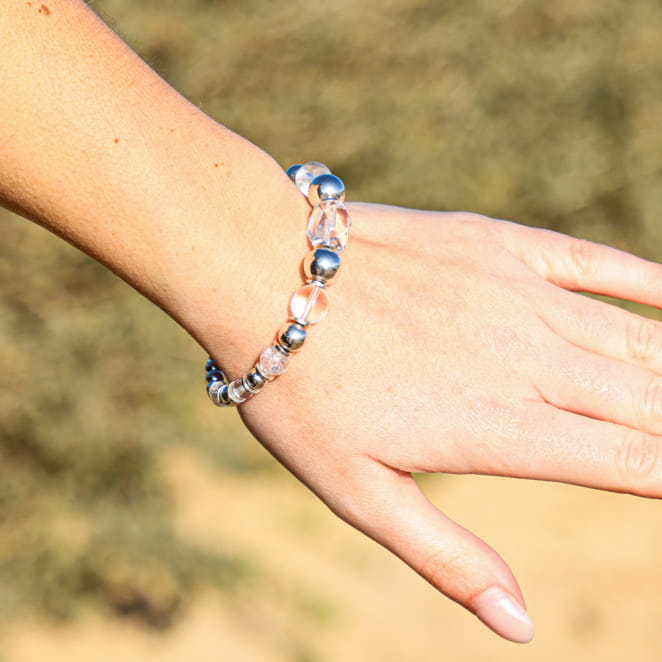 Découvrez notre bracelet pour femme Kenitra, une invitation à l’évasion et à la douceur des bords de mer. Ce bijou artisanal, aux perles argentées et de cristal de roche, capture la lumière et évoque l’esprit nature de la côte Ouest. Parfait pour sublimer vos tenues avec une touche de luminosité et de simplicité, ce bracelet s’inspire des vacances et de l’artisanat fait main.
