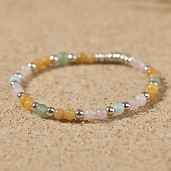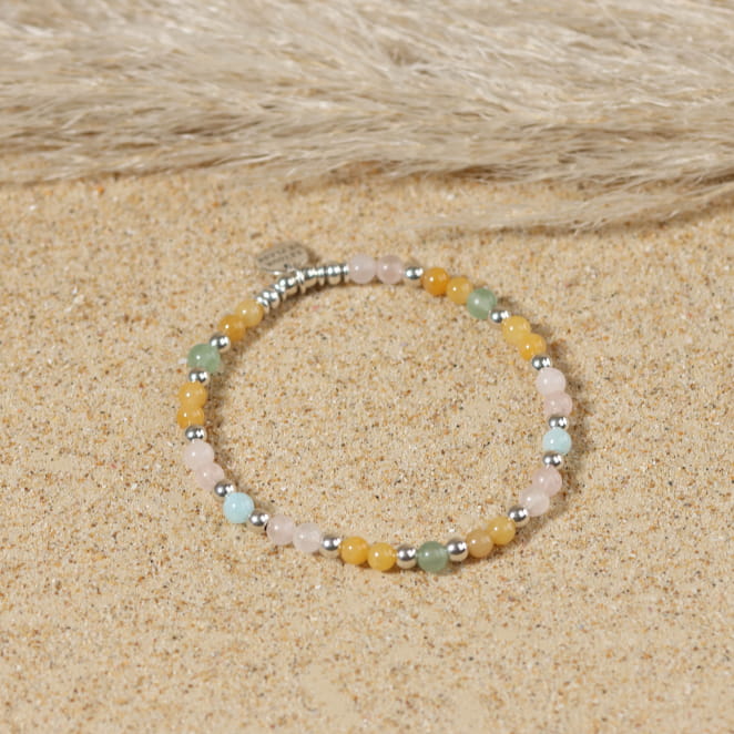 Découvrez ce bracelet artisanal pour femme, symbole d’évasion et de douceur, où se mêlent perles en pierres naturelles aux reflets lumineux et des perles argentées. Inspiré par l’esprit nature et les teintes apaisantes du bord de mer, ce bijou apporte une touche de sérénité à votre poignet. Chaque perle, soigneusement sélectionnée, évoque les couleurs des paysages côtiers, pour un accessoire unique et intemporel.