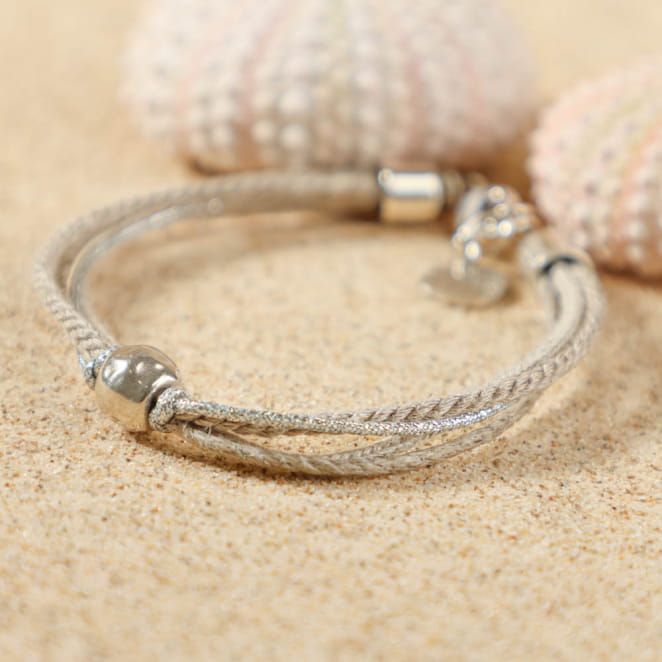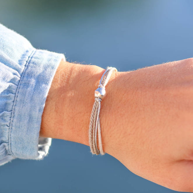 Sublimez votre poignet avec le bracelet multi-rang Marido, parfait mélange d’élégance et de simplicité. Composé d’un délicat cordon en lin, d’un cordon argenté lumineux, d’un cordon beige doux et rehaussé d'une perle argentée éclatante, il évoque la douceur des plages. Léger et intemporel, il s'accorde aussi bien à vos tenues décontractées qu'à vos moments les plus sophistiqués. À porter seul ou associé à d'autres bijoux pour un effet superposé chic.