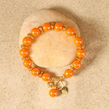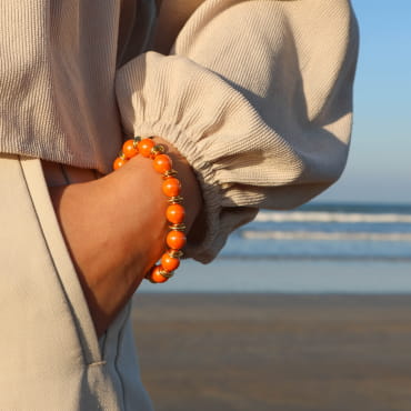 - des perles en agate orange,
