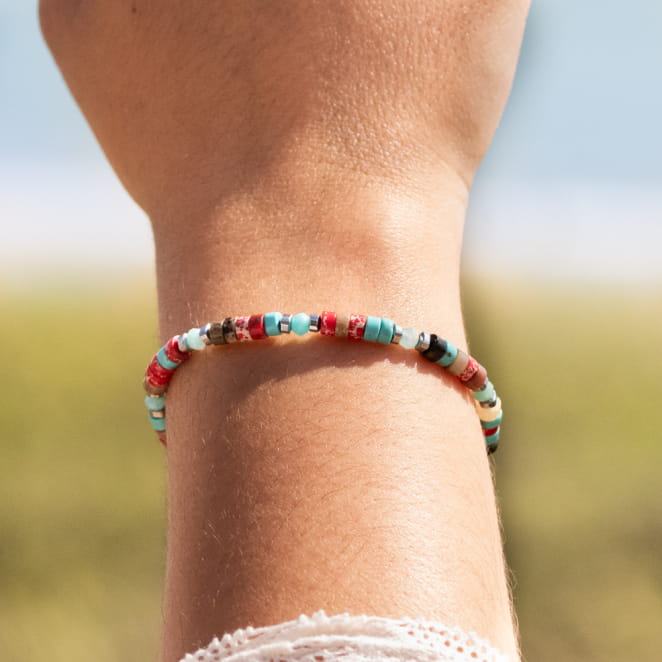 Le bracelet Médine en perles argent et multicolore, apporte une touche d'originalité avec ses couleurs vives. voir plus