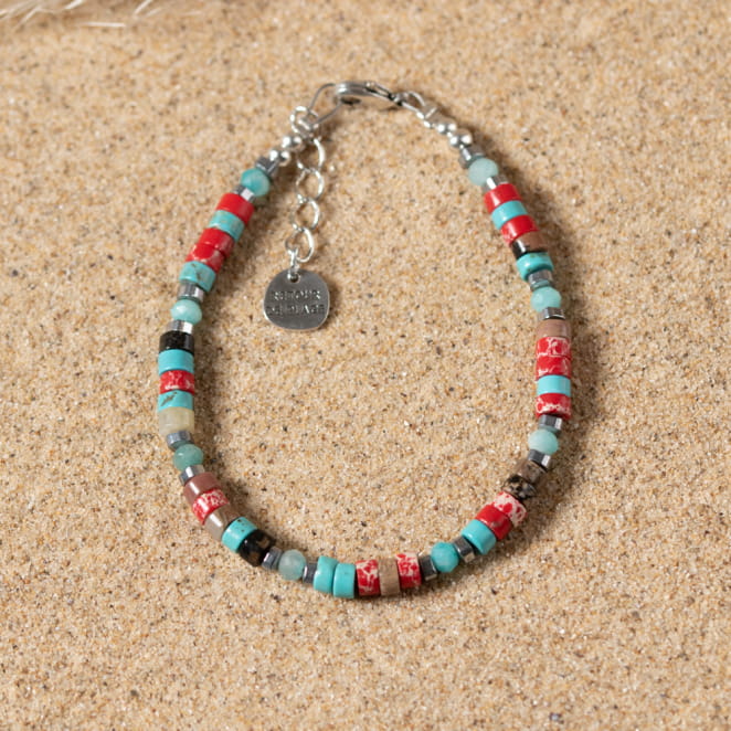 Le bracelet Médine en perles argent et multicolore, apporte une touche d'originalité avec ses couleurs vives. Son design éclatant et audacieux ajoute une note de fraîcheur et de dynamisme à toute tenue. Parfait pour ceux qui aiment se démarquer, ce bracelet est un accessoire unique et moderne, idéal pour égayer votre style quotidien.