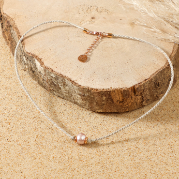 - d’une perle en nacre rosé,