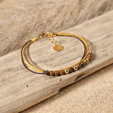 Découvrez le bracelet Natte, une tresse moutarde agrémentée de rubans pailletés. Lumineux et éclatant comme le soleil, il apporte une touche de gaieté et de brillance à votre poignet. Parfait pour égayer n'importe quelle tenue, le bracelet Natte est l'accessoire idéal pour celles qui aiment se démarquer avec style et éclat.