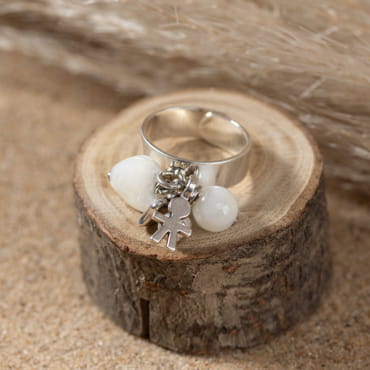 - d’une perle en nacre blanche,