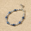 Craquez pour notre bracelet en perles Norvège. Ce bracelet pour femme associe délicatesse et éclat minéral dans une harmonie de couleurs douces. Ses perles en verre bleu et argenté se mêlent à la profondeur des perles naturelles bleues en dumortiérite et à la tendresse de perles en verre rose clair. Un bracelet en perles féminin et raffiné, qui capture les nuances changeantes du ciel et de l'océan, idéal pour illuminer vos looks avec subtilité.