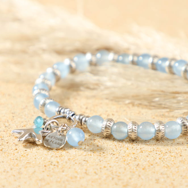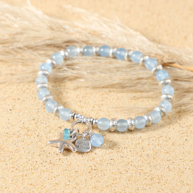 Illuminez votre look avec le bracelet Océan, pétillant de couleur ! Il est accompagné de perles en verre bleues et d'un pendentif en forme d'étoile de mer pour mettre en valeur cette couleur si éclatante qui nous rappelle l'océan.