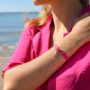 Ce bijou mesure 26 cm (non attaché), s'adapte facilement à la taille du poignet grâce à son cordon à nouer.