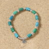 Apportez un vent de fraîcheur à votre poignet avec le bracelet Oda. Cette création évoque les eaux profondes et les pierres que l'on ramasse au détour d'un sentier côtier. Monté sur un fil élastique résistant, il s'enfile facilement à votre poignet. Une touche de bleu-vert pour les esprits libres et les coeurs d'aventurières !