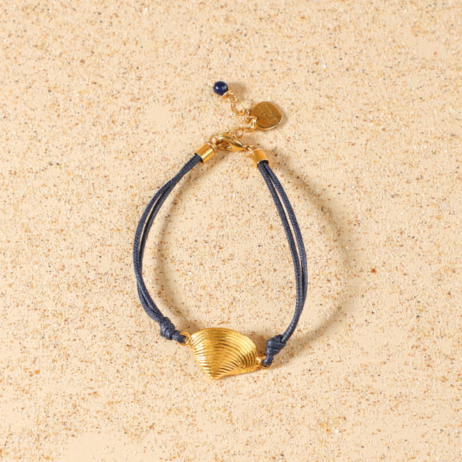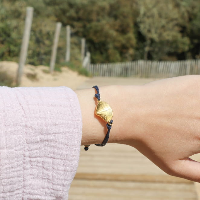 Partez à la pêche aux palourdes avec le bracelet artisanal Palourde ! Avec son cordon en coton ciré bleu montana, et son délicat pendentif en forme de coquille de palourde en métal doré, il apporte une touche marine éclatante à votre poignet.
