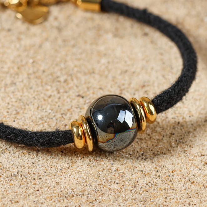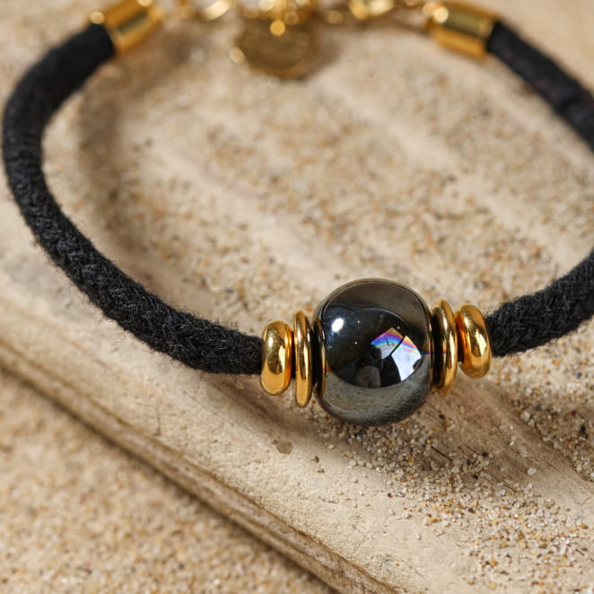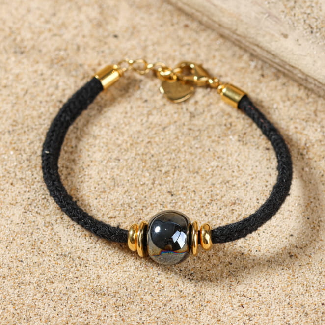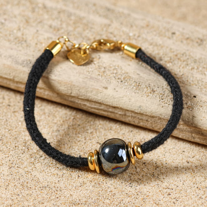 Adoptez le bracelet réglable Porto en éco jean noir, orné d'une élégante perle en céramique noire. À la fois tendance et éco-responsable, il ajoute une touche décontractée à toutes vos tenues. Ce bijou unique vous rappelle l'authenticité des matières naturelles tout en affirmant ton style.