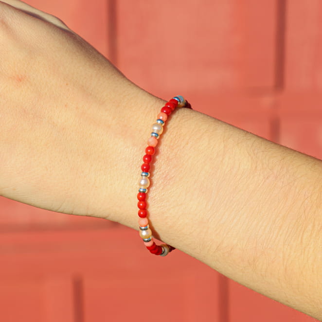 Découvrez notre bracelet Pourpre, ce bijou évoque la douceur des couchers de soleil sur la plage. Ce bijou lumineux, aux teintes chaudes de rouge et d’orange, allie perles de corail en bambou, perles de rivière rose et touches argentées. Parfait pour apporter une touche naturelle et colorée à vos tenues, il rappelle l’esprit apaisant des vacances au bord de l’eau.