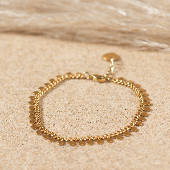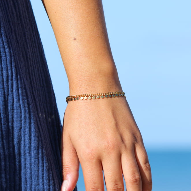 Le bracelet Rempart évoque l'élégance avec ses délicats disques dorés dansant gracieusement autour du poignet. voir plus