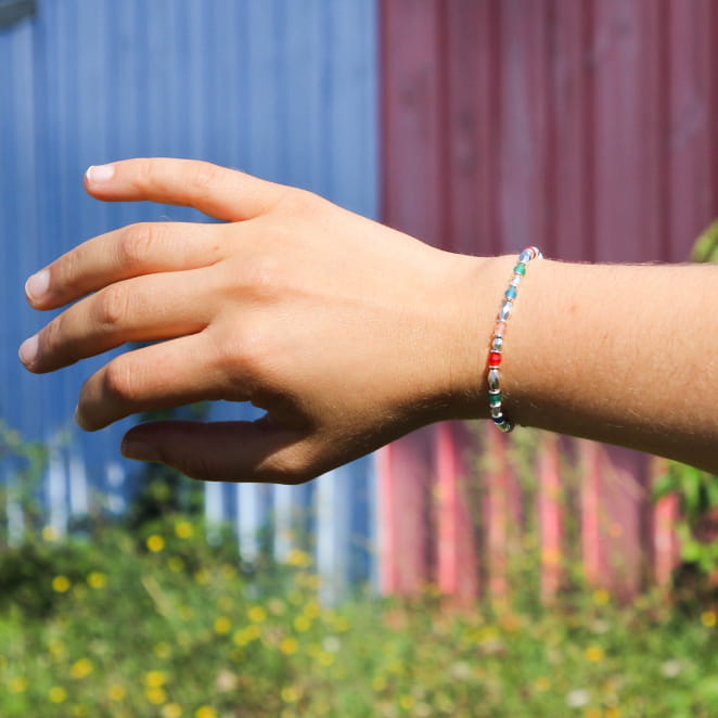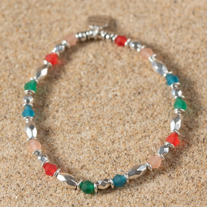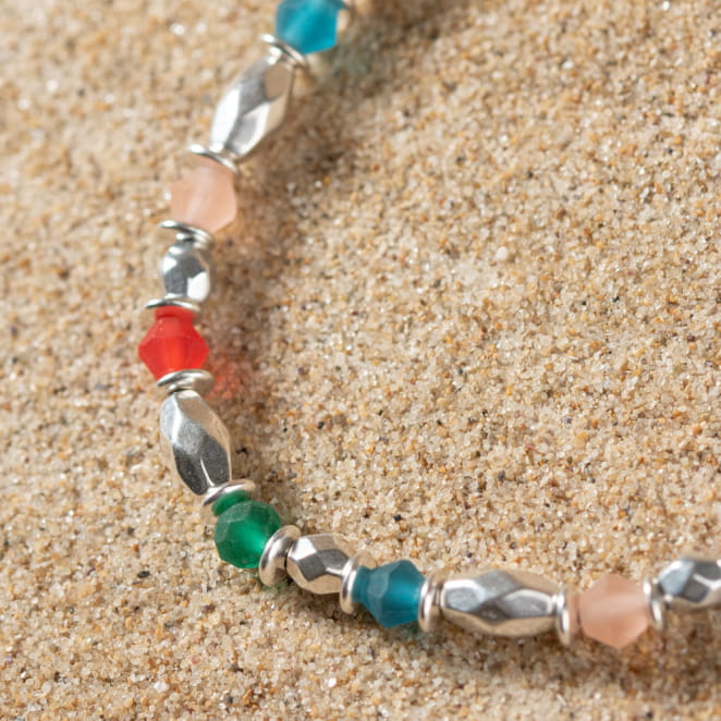 Succombez à ce bracelet Scapin, en argenté multicolore et aux perles facettées, véritables éclats de lumière sur votre poignet. Chaque perle, capte la lumière et reflète un arc-en-ciel de couleurs éclatantes. Ce bracelet élastique s'adapte à toutes vos envies, ajoutant une touche de vivacité à vos tenues ! Coloré et lumineux, il insufflera une fraîcheur estivale à votre style, rappelant la magie des journées ensoleillées au bord de la mer.