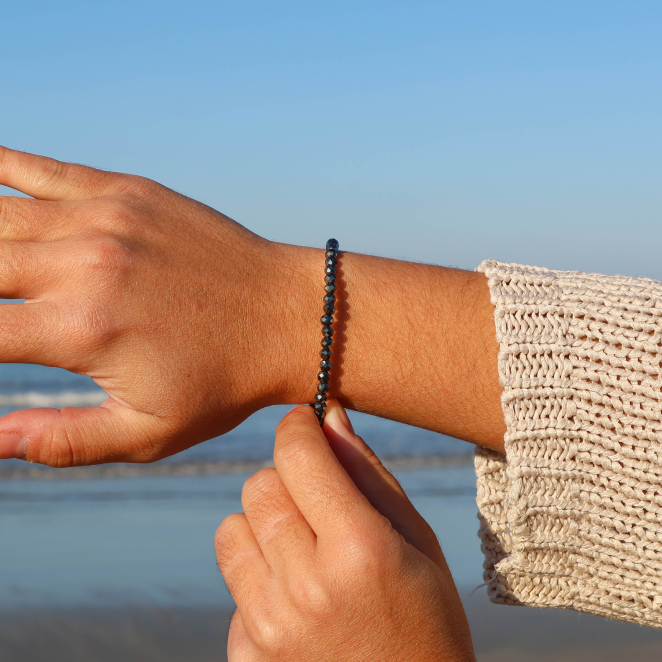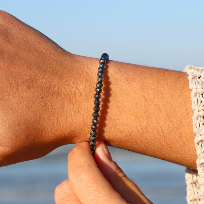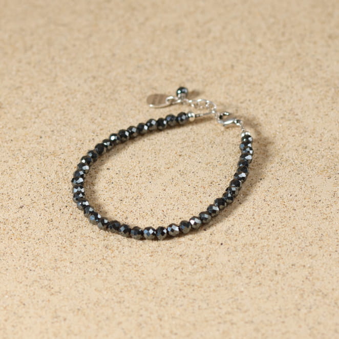 Découvrez le bracelet Sculpte, un bijou léger et brillant qui affinera votre poignet grâce à ses petites perles en hématites grises. Votre poignet sera sublimé par la lumière captivée des perles donnant éclat et scintillement à votre tenue ! Un bracelet se portant avec des tenues festives comme du quotidien, le métal argenté créé une belle harmonie avec l'hématite grise.