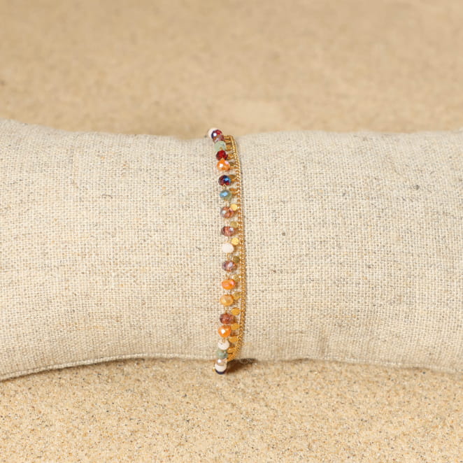 Appréciez au tour de votre poignet le bracelet pour femme Solange, un bijou multicolore et doré qui apportera subtilement de l'éclat à votre tenue. voir plus