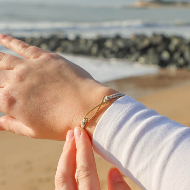 Affirmez votre style marin avec le bracelet Sud, en lin orné d’un charmant poisson doré. voir plus