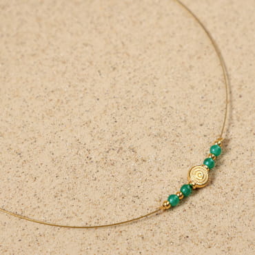 Craquez pour le sublime bracelet fantaisie Tavira. Ce bijou fantaisie est un bracelet élégant avec ses perles en verre vertes et dorées, accordez le avec le collier et faites en un bijou chic et intemporel !