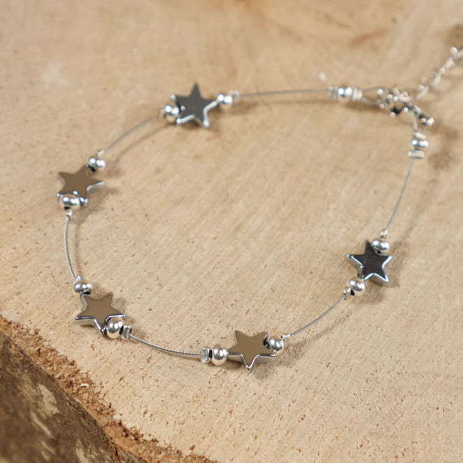 - des perles en forme d’étoile en hématite en métal plaqué argent 999,