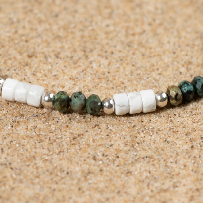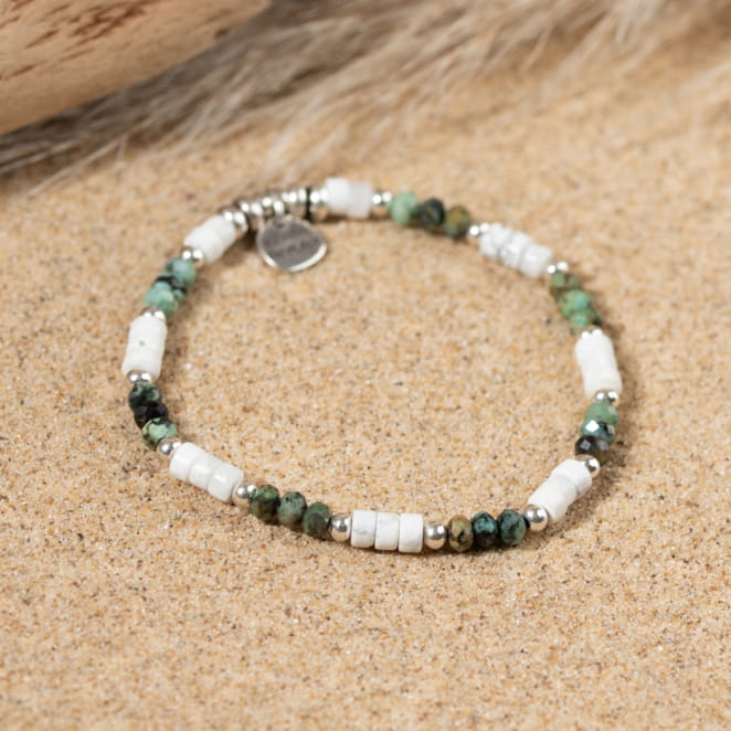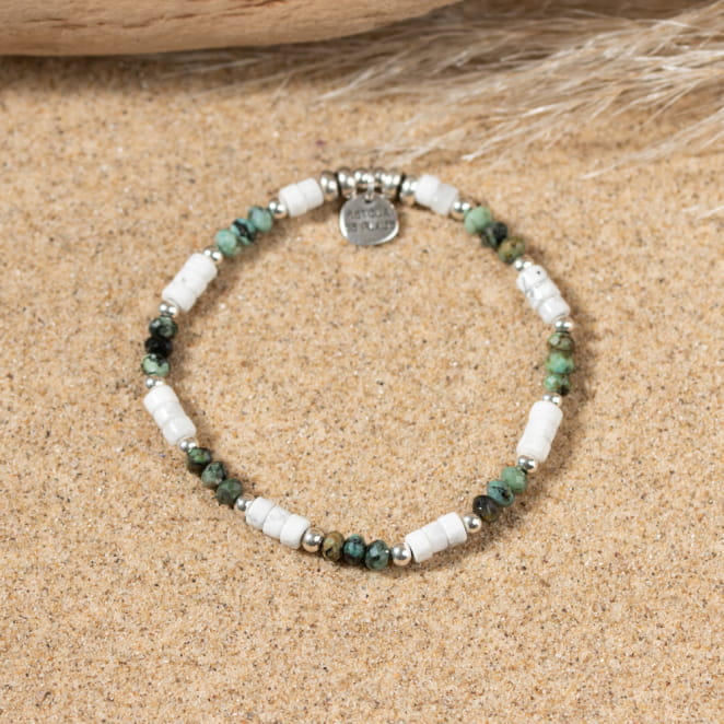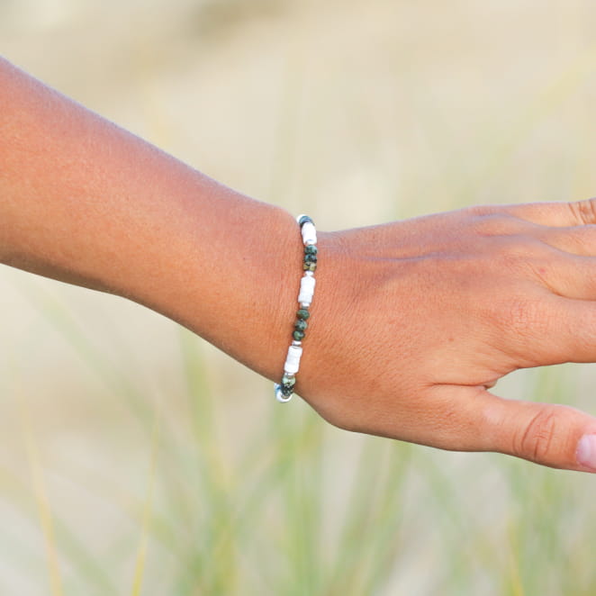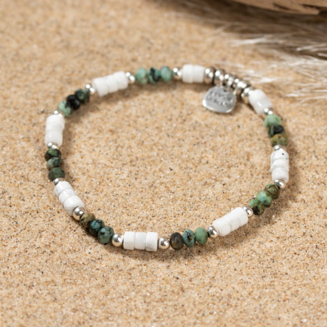 Le bracelet pour femme Trevi est une pièce élégante composée de perles argentées, blanches et vertes. voir plus