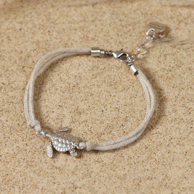 Succombez pour le bracelet Turtle, il associe la texture de cordons en coton en lin, à l’élégance de son pendentif tortue argentée, symbole de sérénité et de voyage. Inspiré par l’océan, il évoque la douceur des marées et les trésors des plages lointaines.🐢