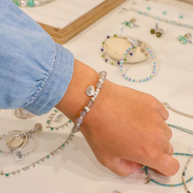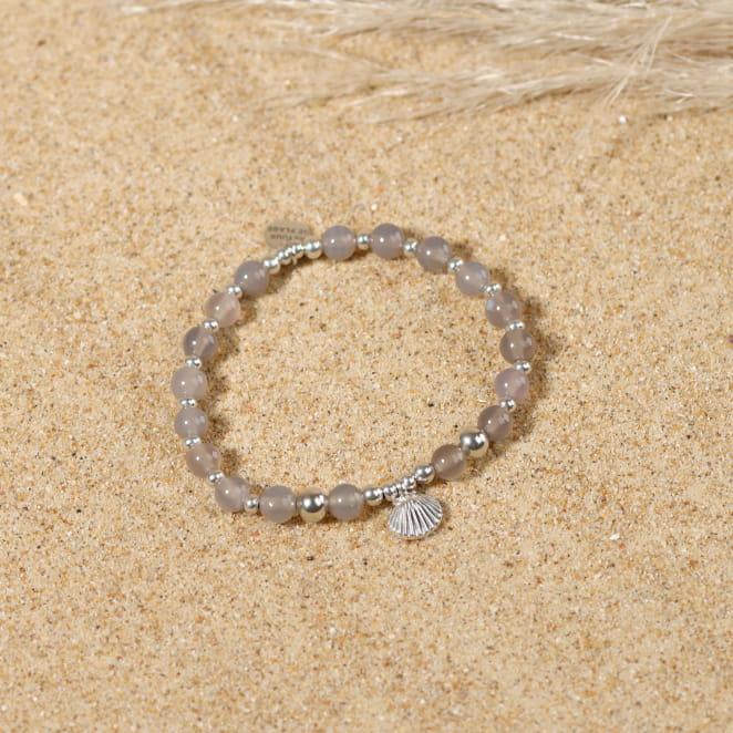 Plongez dans l'esprit de la plage avec le bracelet pour femme Vanneau, une fusion audacieuse de perles en agate grises et argentées. Son pendentif coquillage argenté ajoute une touche d'originalité, évoquant les douces brises marines et l'aventure estivale. Un accessoire parfait pour ceux qui recherchent un style à la fois décontracté et distinctif.