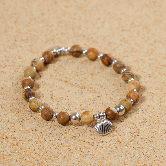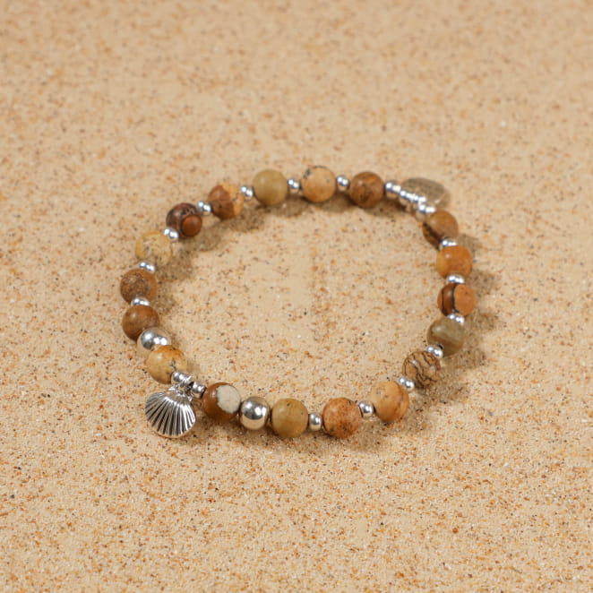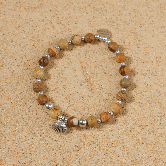 Plongez dans l'esprit de la plage avec le bracelet pour femme Vanneau, une fusion audacieuse de perles en jaspes beiges et argentées. Son pendentif coquillage argenté ajoute une touche d'originalité, évoquant les douces brises marines et l'aventure estivale. Un accessoire parfait pour ceux qui recherchent un style à la fois décontracté et distinctif.