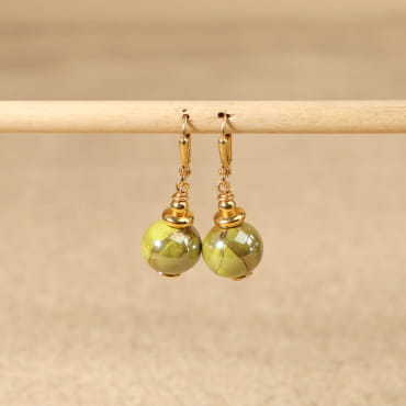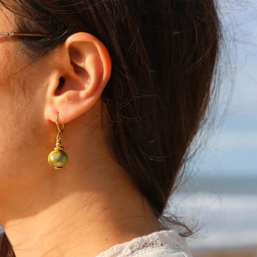 - de 3 perles en métal doré 24K,