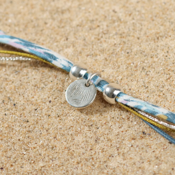 - d'un ruban en tissu multicolore,