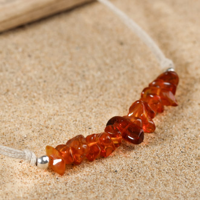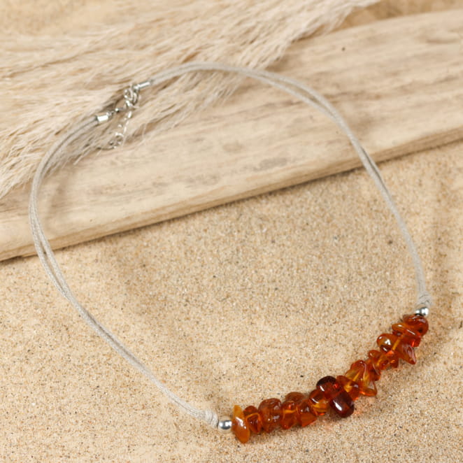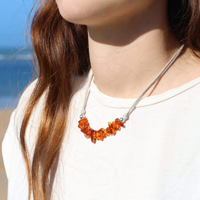 Transportez-vous sous les éclats chaleureux du soleil avec le collier pour femme Ambroise. Ce délicat bijou se compose d'un cordon en lin beige apportant une touche de naturel lié aux perles en pierre d'ambre jaune ajoutant une touche de lumière chaude. Ambroise est un collier artisanal captivant et léger qui s'associe à toutes les couleurs d'été.