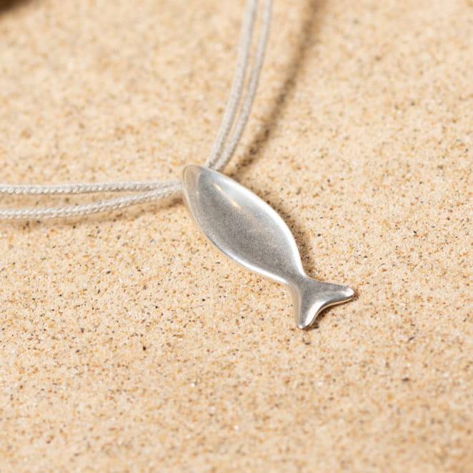 Apportez une touche éclatante à vos tenues avec le collier Anzio. Ce bijou en lin naturel, orné d'un pendentif poisson en métal argenté, allie simplicité et élégance. Idéal pour révéler votre côté fantaisie, il sublime discrètement votre style quotidien.