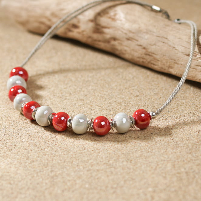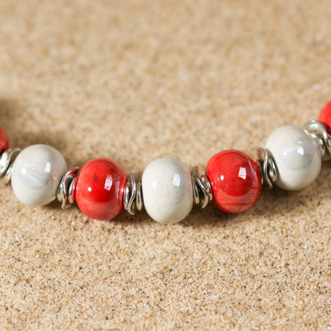 - de perles en céramique rouge et blanc,