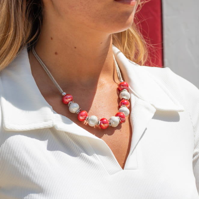 Le collier Baiona capture l'essence de la ville basque avec ses couleurs vibrantes. voir plus