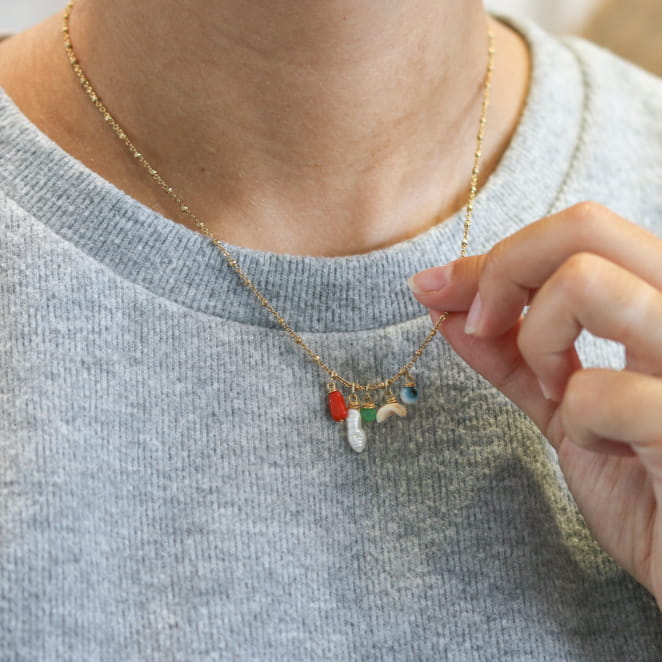 Découvrez le collier pour femme Bastia, un bijou incontournable ! Sa chaîne dorée, ornée de pendentifs rouge, blanc et vert, intègre des éléments naturels comme la nacre et le coquillage. Inspiré des couleurs gaie, ce collier unique évoque la beauté et ajoute une touche de raffinement à toute tenue !