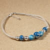 Invitez la fraîcheur minérale avec notre collier Chopa . Monté sur des cordons en lin naturel, ce collier associe perles de céramique, perles en verre recyclé bleu et éléments argentés en perles et rondelles. Un jeu de matières douces et de reflets frais, comme une balade au bord de l’eau. Équilibré, texturé, tout en nuances océaniques... Un bijou à porter au quotidien ou pour rehausser un look estival avec subtilité.