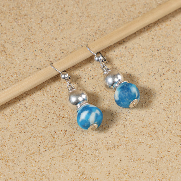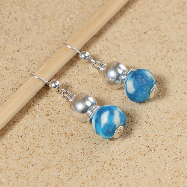 - de perles en verre recyclé bleu,