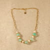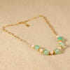 Optez pour notre collier en perles pour femme Christine, un bijou qui associe subtilement l'éclat des perles naturelles, en verre recyclé et dorées. Les perles vertes en verre recyclé apportent une touche moderne et colorée elles-mêmes misent en valeur par la douceur des perles de rivières. Ces douces matières nous rappellent les reflets du soleil sur l'océan et ses jolies nuances de couleurs !
