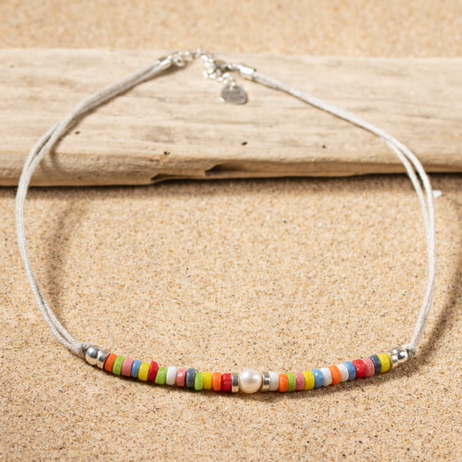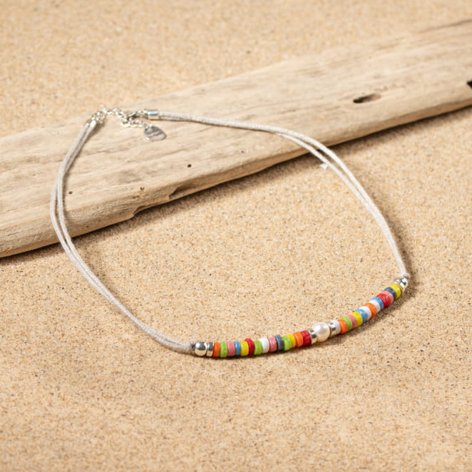 Découvrez le collier Dieppe : l'élégance naturelle à votre cou ! Confectionné avec un cordon en lin beige et des perles multicolores, ce collier incarne le charme bohème chic. Son design polyvalent s'adapte à toutes les tenues.