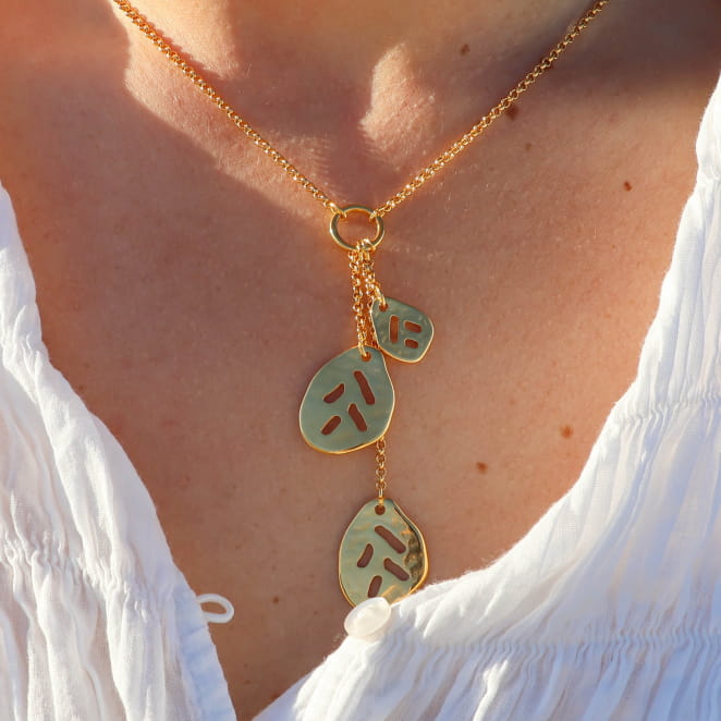 Laissez-vous inspirer par notre collier pour femme Folio, un bijou qui ajoute charme grâce au doré de ces pendentifs toute en légèreté. voir plus