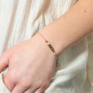 - d'un fermoir mousqueton doré à l'or fin 24K,