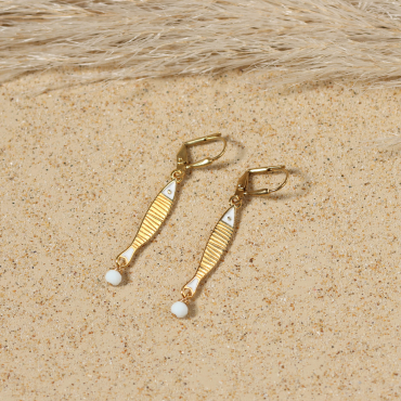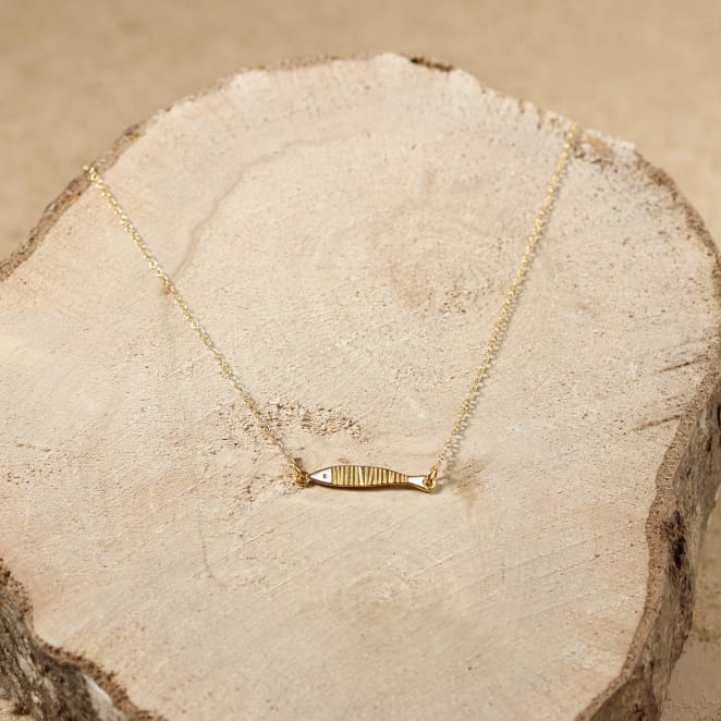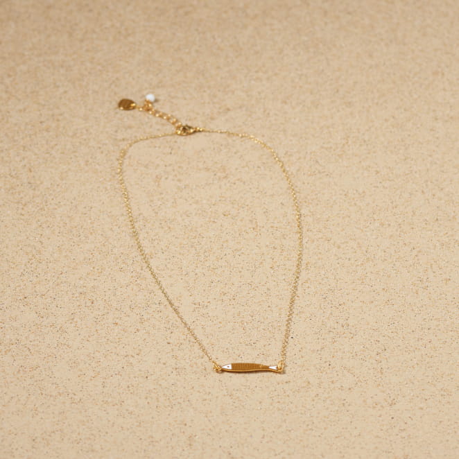 Apportez une touche lumineuse d'évasion à chacun de vos looks avec le collier pour femme Gremille. Son petit poisson doré et blanc vous donne des envies de vacances en bord de mer. Ce bijou délicat et fait main ajoute une touche d'originalité et de douceur à vos tenues du quotidien !
