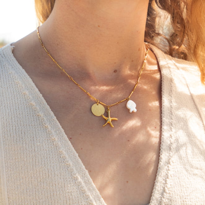 - d’un pendentif étoile de mer doré,
