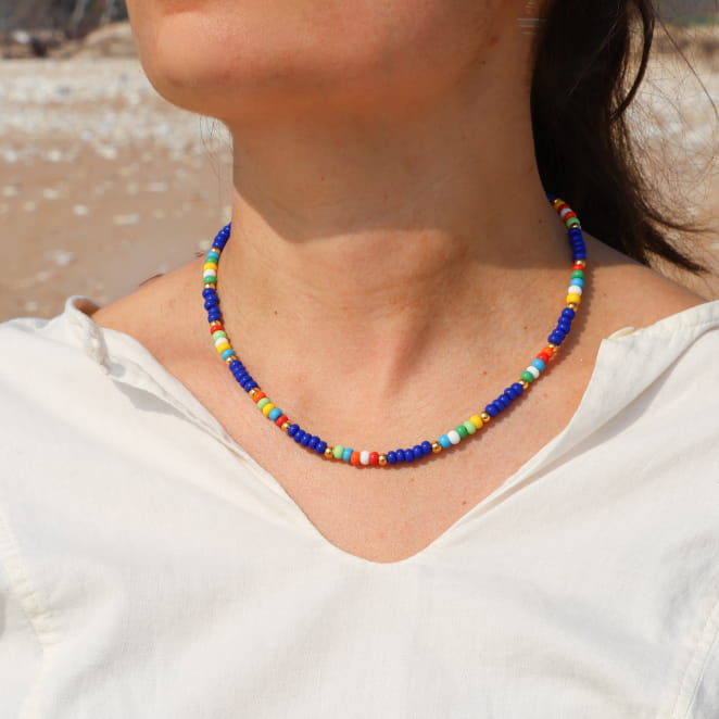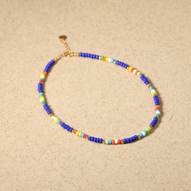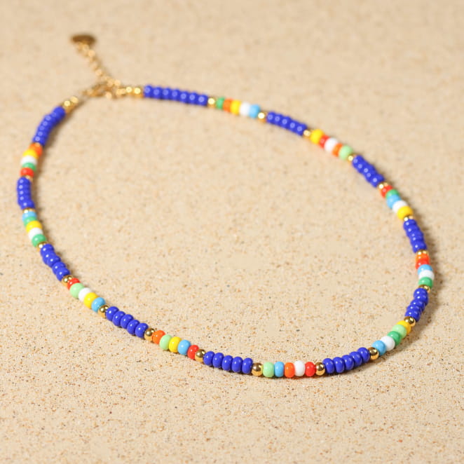 Le collier pour femme Hardy combine harmonieusement des perles bleu dur, multicolores et dorées, offrant un éclat vibrant et raffiné. Parfait pour rehausser n'importe quelle tenue, ce bijou unique peut être porté avec une parure assortie. Idéal pour celles qui recherchent une touche d'élégance audacieuse et colorée.