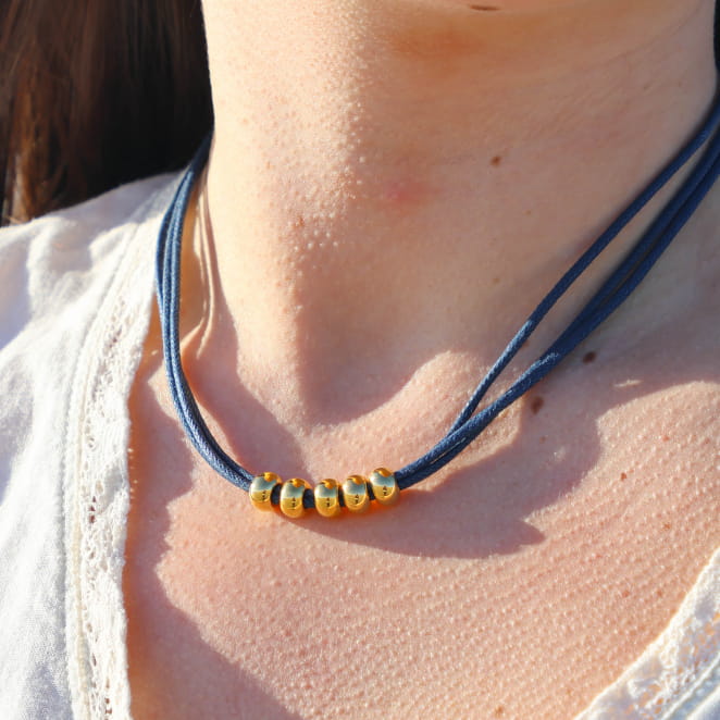 Découvrez l'exquis collier Île, une ode à la nature. Composé de coton bleu et agrémenté de perles en métal doré, il évoque l'éclat du soleil sur une île paradisiaque. Un bijou qui illumine votre teint tout en célébrant la beauté simple et authentique. Naturel et élégant, le collier Île est un incontournable.