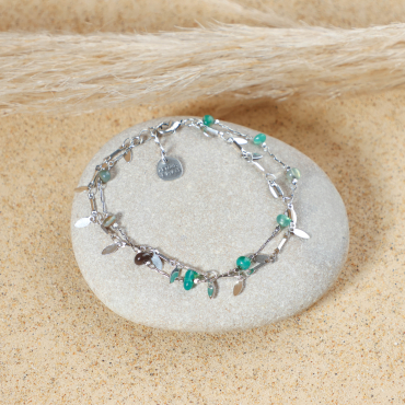 - d'une chaine en métal argenté composée de pierre de couleur verte,
