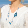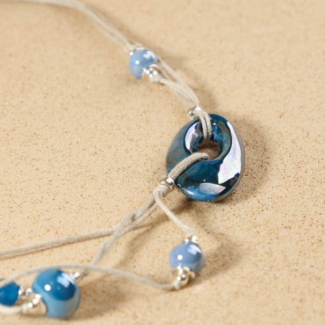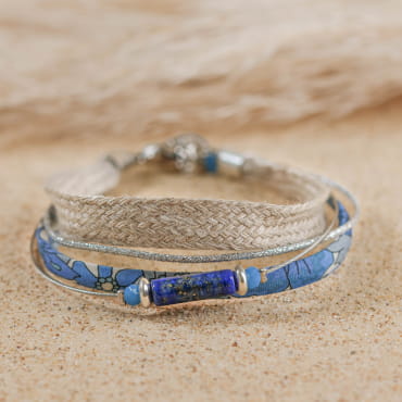 Découvrez le collier Maryse, une pièce unique qui allie douceur et esprit nature. Ce multirang, composé de cordon en lin naturel beige, s’inspire des teintes apaisantes du bord de mer. Avec ses perles en céramique bleu et bleu montana, ses touches de verre recyclé bleu et ses accents métalliques plaqués argent, il évoque l’évasion et la lumière de l’Île d’Oléron. Fabriqué en France, ce collier artisanal apporte une touche de sérénité à chaque instant.